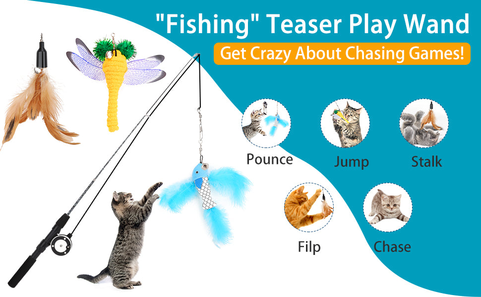 4 Pack Cat Feather Teaser Wand Toys