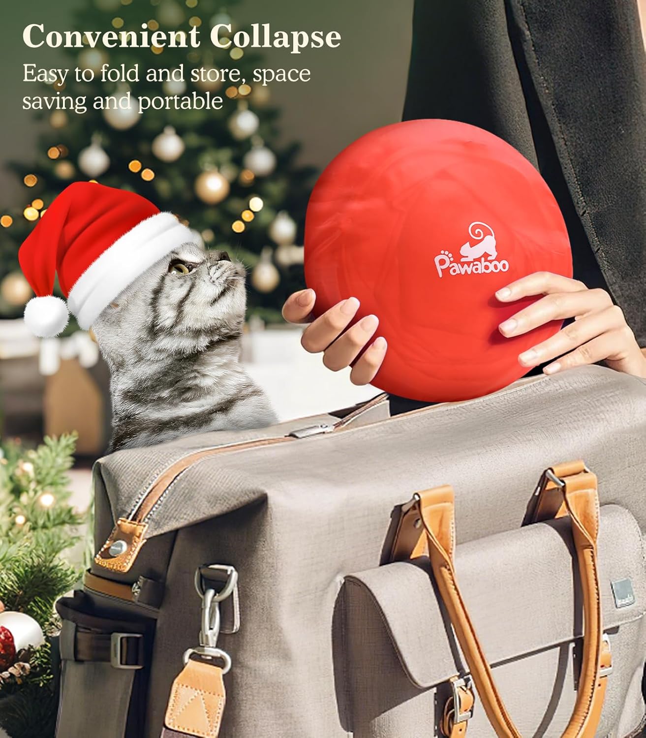 Pawaboo Cat Tunnel Bed Under Christmas Tree, 35.4'' Christmas Cat Toy Circle Tunnel with Toy Ball, Decorative Christmas Festive Foldable Kitty Tube Tunnel for Cat Small Animal (Red Xmas Tree)